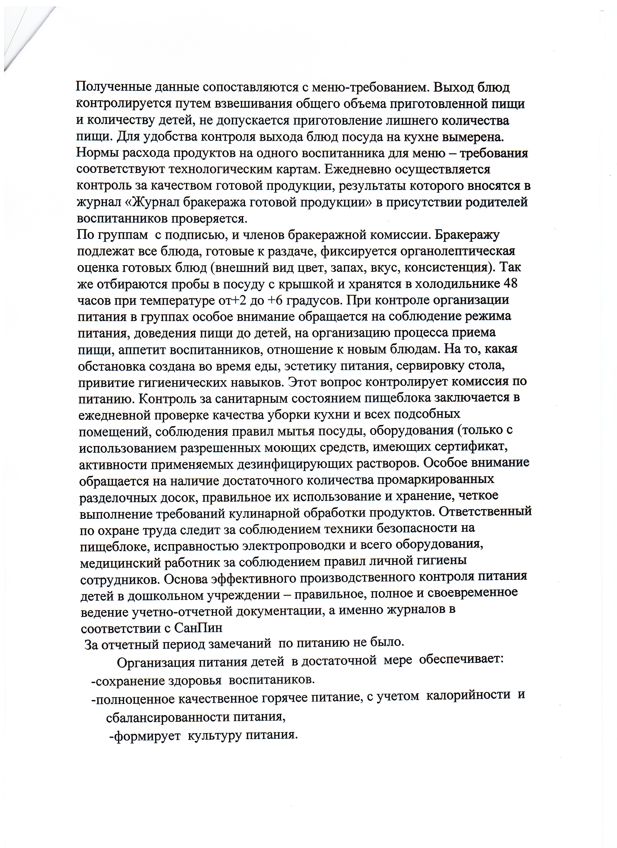 » Отчет бракеражной комиссии по питанию