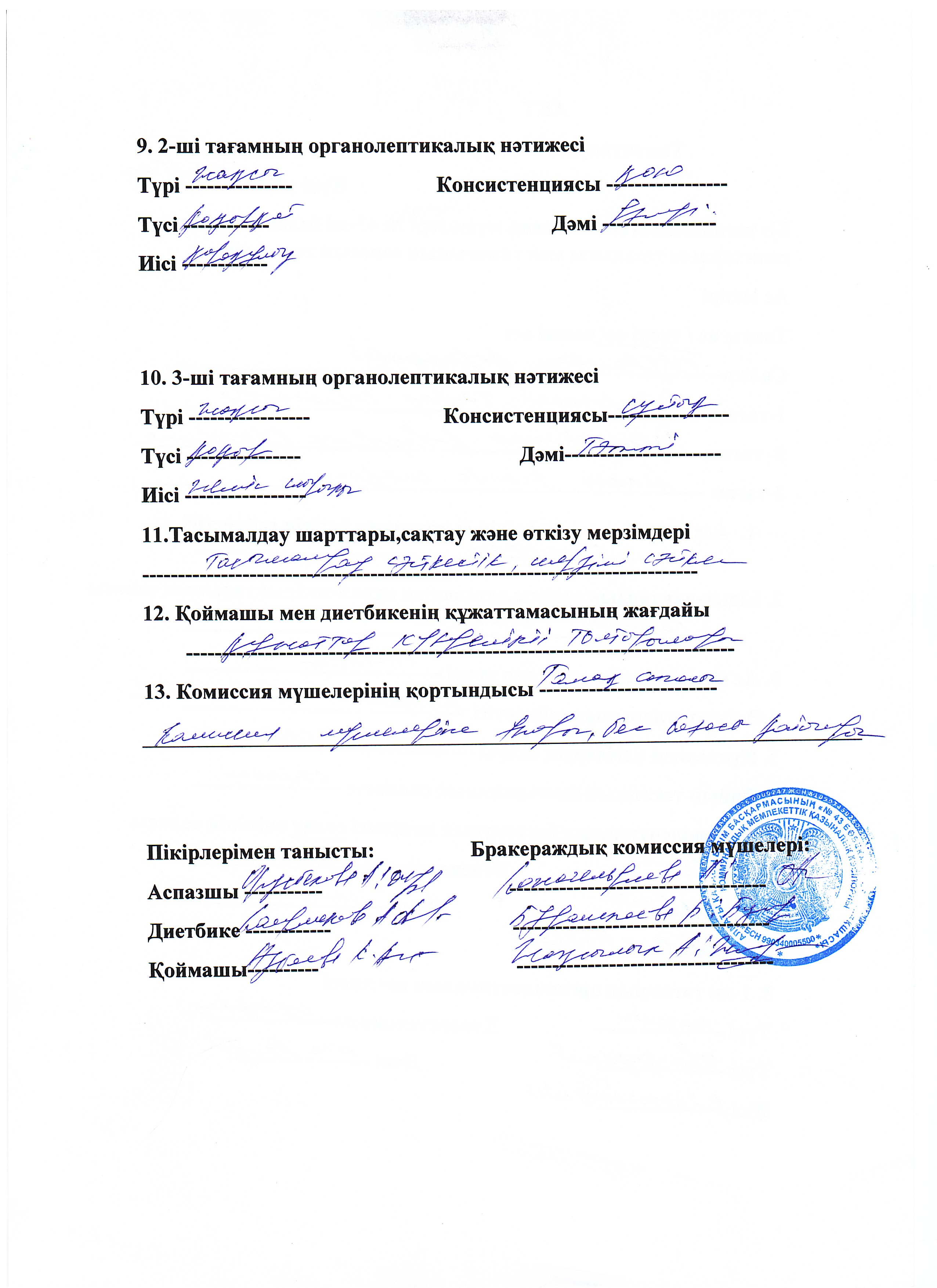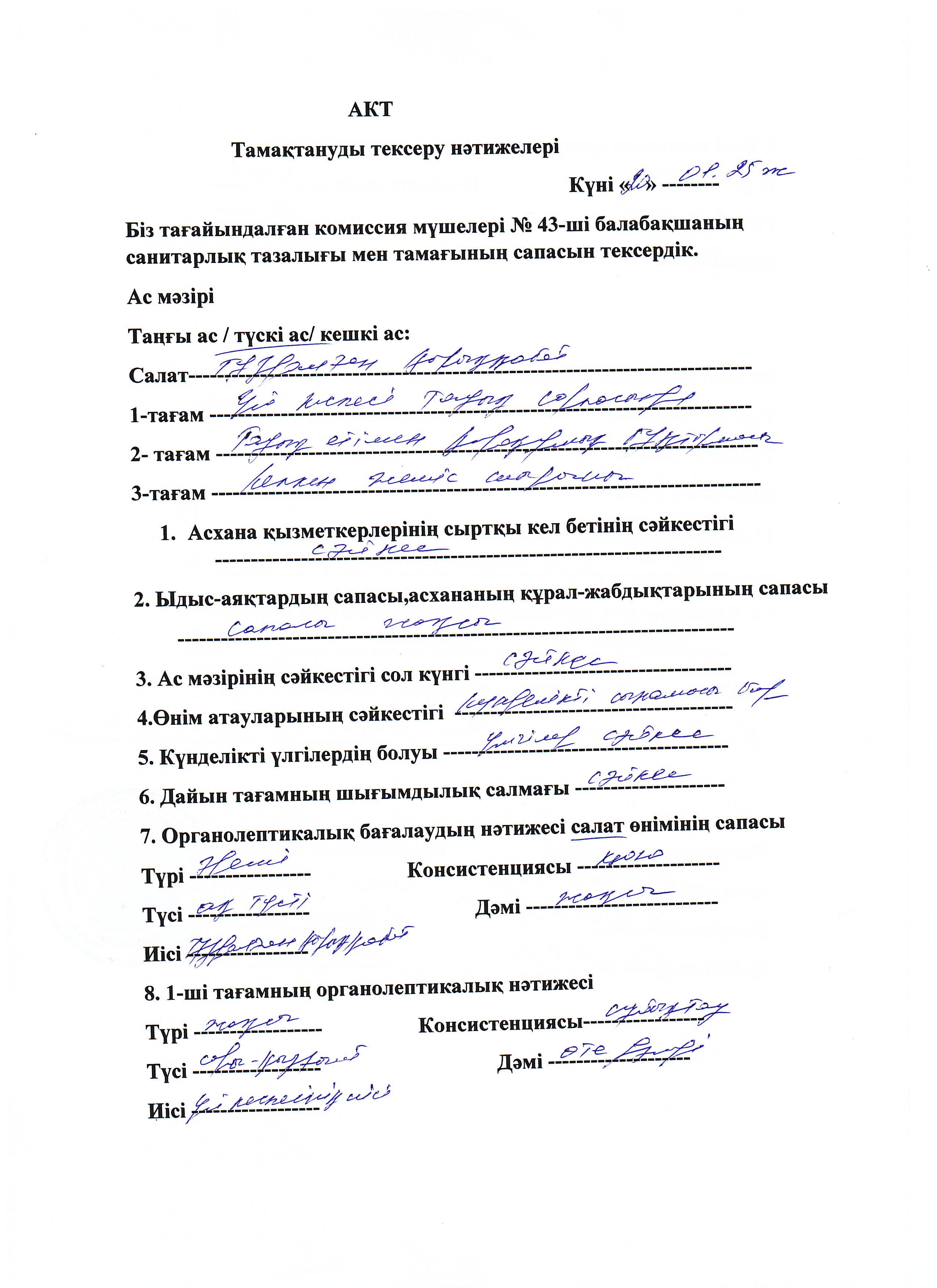 Ас мәзіріне бақылау жүргізу актісі/Акт проведения контроля за меню