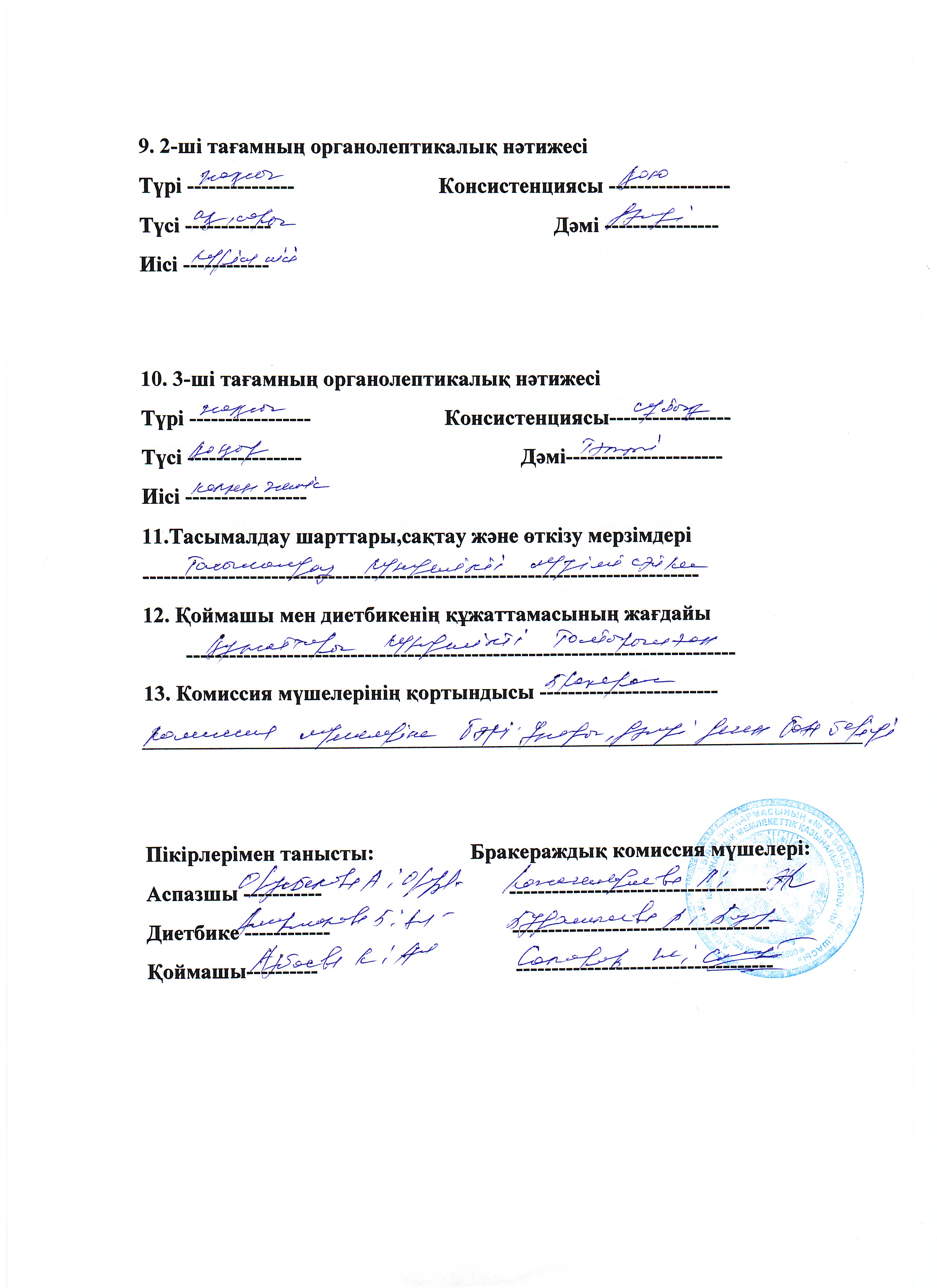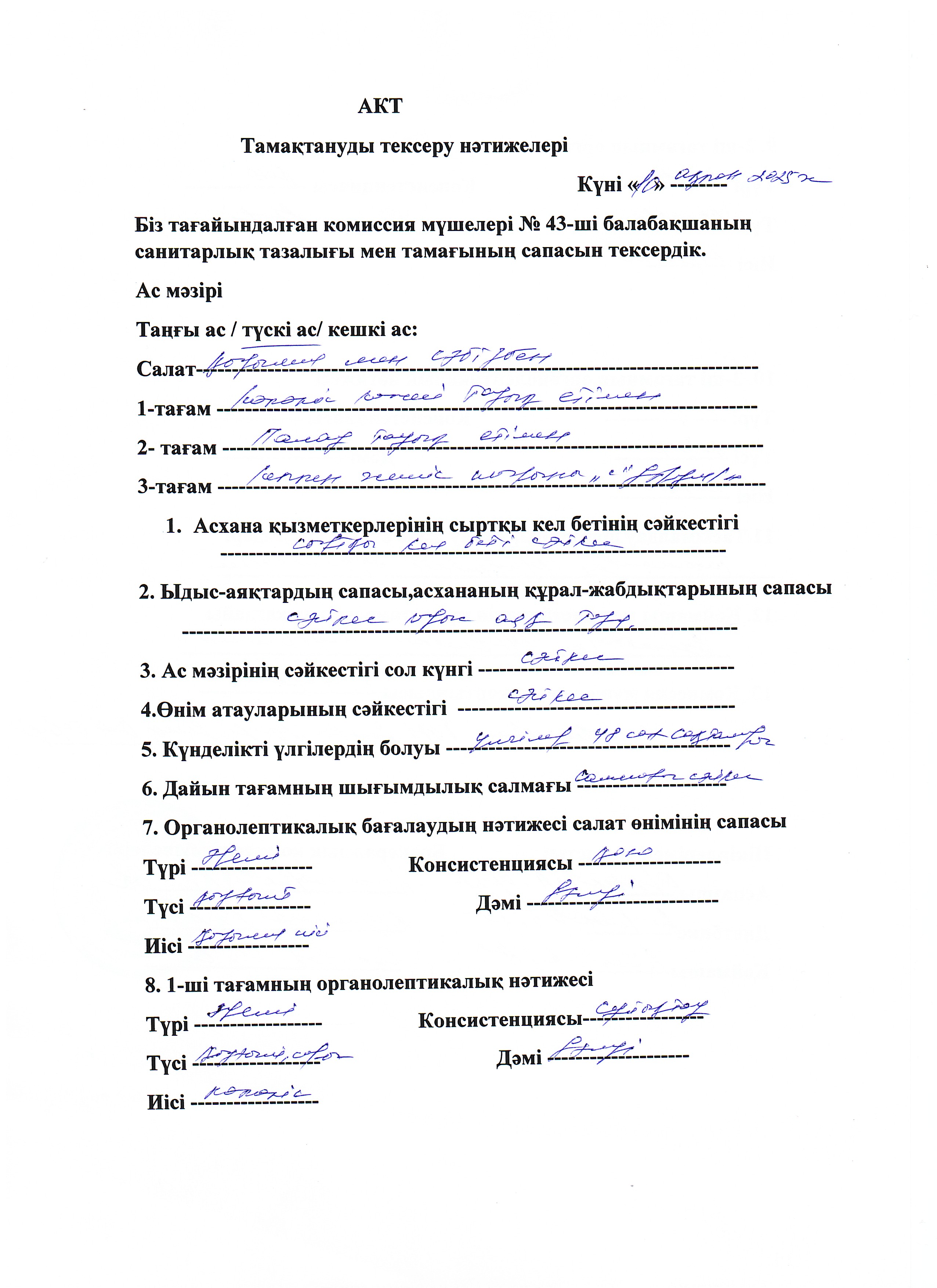 » Акт Тамақтануды тексеру нәтижелері
